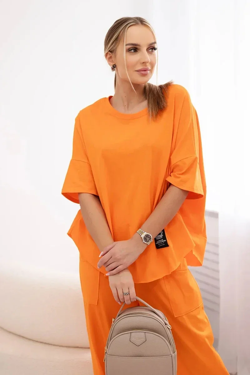 Bavlněný komplet halenka + kalhoty pomeranč