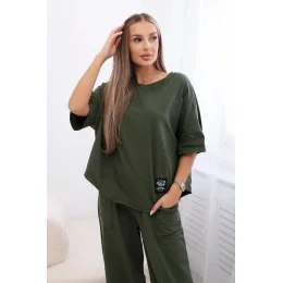 Bavlněný komplet halenka + kalhoty světlá khaki