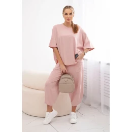 Bavlněný komplet halenka + kalhoty tmavě pudrově růžová