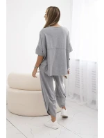 Bavlněný komplet halenka + kalhoty tmavě pudrově růžová