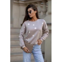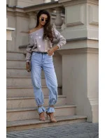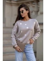 Mikina má kulatý výstřih, dlouhé rukávy a je olemovaná stahovacími lemy. Model má délku k bokům.
