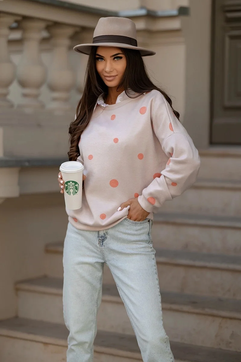 Oranžová dámská bavlněná mikina s puntíky (784)