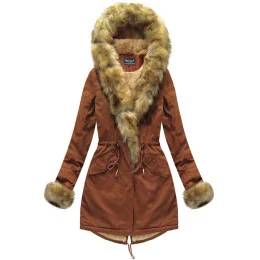 Bavlněná dámská zimní bunda parka v karamelové barvě s kožešinou (xw793x)