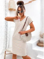 Béžovo-bílé letní dámské bavlněné pruhované šaty (762)