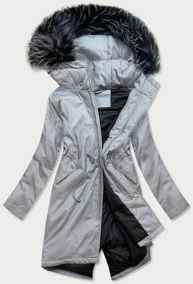 Šedá bavlněná dámská zimní bunda parka s přírodní péřovou výplní (7085)