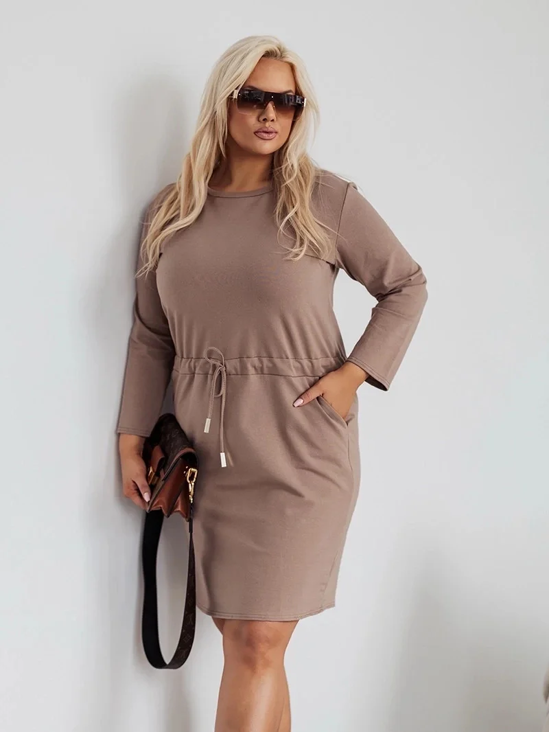 Dámské bavlněné šaty v barvě cappuccino se šňůrkou (719)