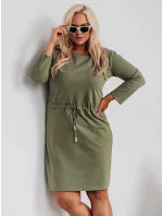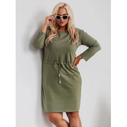 Dámské bavlněné šaty v barvě khaky se šňůrkou (719)