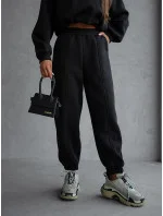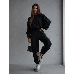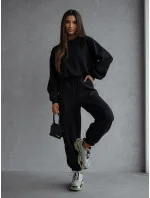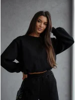 Černý dámský bavlněný teplákový komplet s krátkou mikinou (82160)