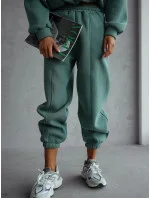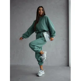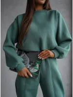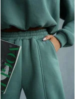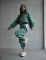 Zelený dámský bavlněný teplákový komplet s krátkou mikinou (82160)