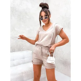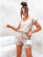 Béžový dámský letní bavlněný komplet (VE87)