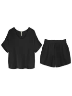 Šortky mají dvě kapsy. V pase modelu je guma.