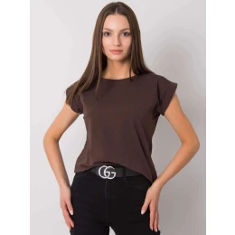 Tmavě hnědé bavlněné dámské tričko T-shirt s ohrnutými rukávky Feel Good (4833.24P)