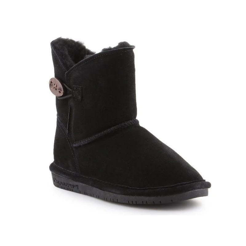 Jedinečné sněhule Bearpaw Rosie Youth 1653Y-011 Black II jsou vyrobeny z kůže. Boty jsou zateplené přírodním kožíškem. Knoflík na boku svršku je ozdobou, ale také usnadňuje obutí boty. Technologie NeverWet - zvýšená odolnost proti promočení Výroba: USA