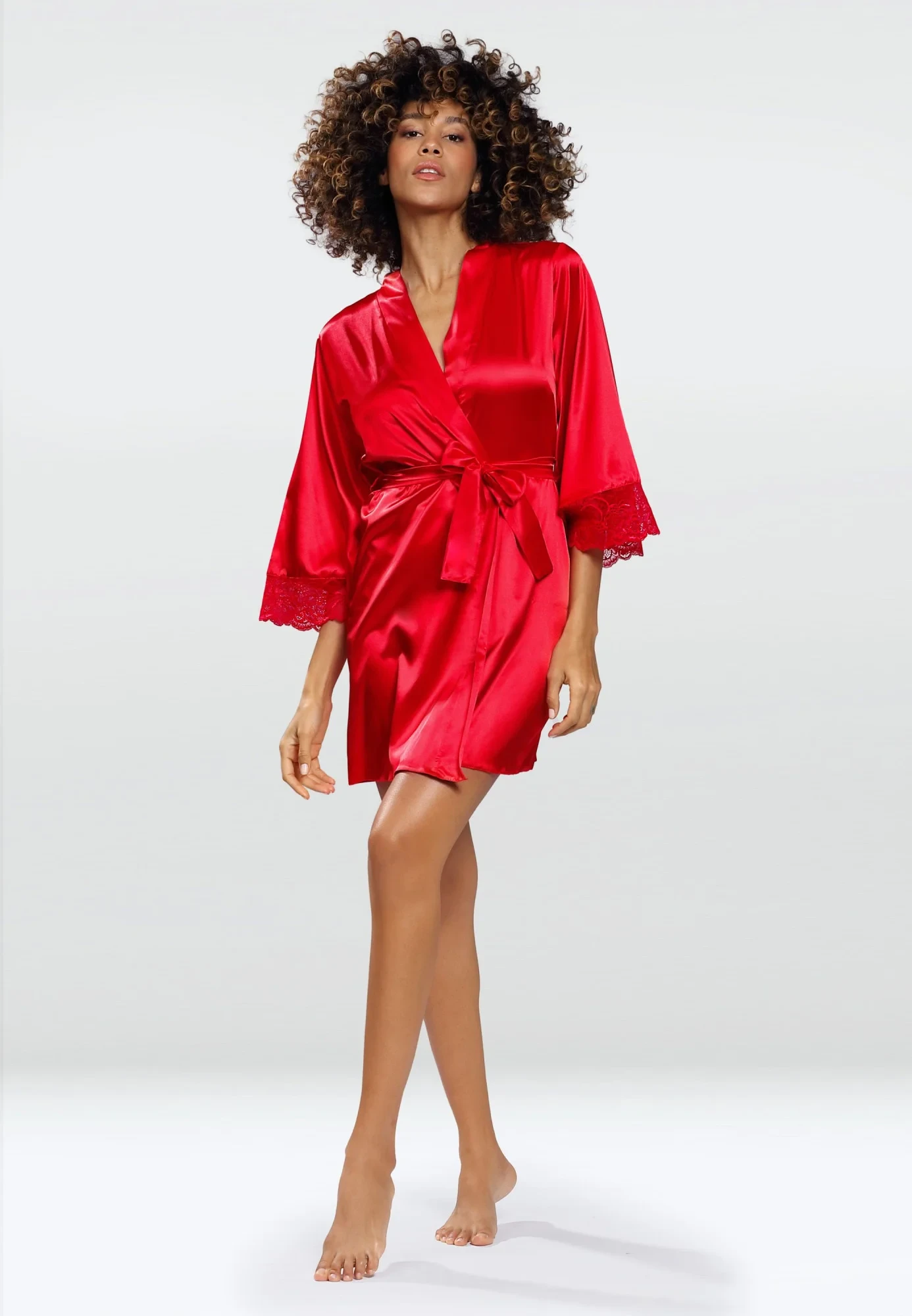 Belinda - fenomenální tenký župan, ve kterém budete zdobit své tělo jako pravá bohyně... Je vyroben z látky nejvyšší kvality, s jemným perleťovým leskem, vyzařuje krásu a půvab. 3/4 délky rukávů, zakončené exkluzivní krajkou. V pase se zavazuje. Skvělý nápad také na elegantní dárek. Výrobek je balen v krabičce. Složení: 100% polyester.