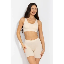 Mírně tvarující, s vyšším sedem a nohavičkami, které zabraňují tření stehen.