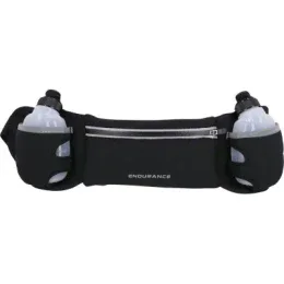 Tento černý opasek je vybaven dvěma lahvemi na vodu, které jsou bezpečně uchyceny v bočních elastických kapsách.