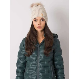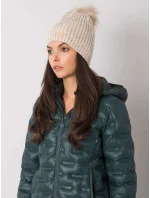 Béžová čepice s bambulí