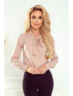Béžová dámská halenka s vázáním ve přední části 140-16