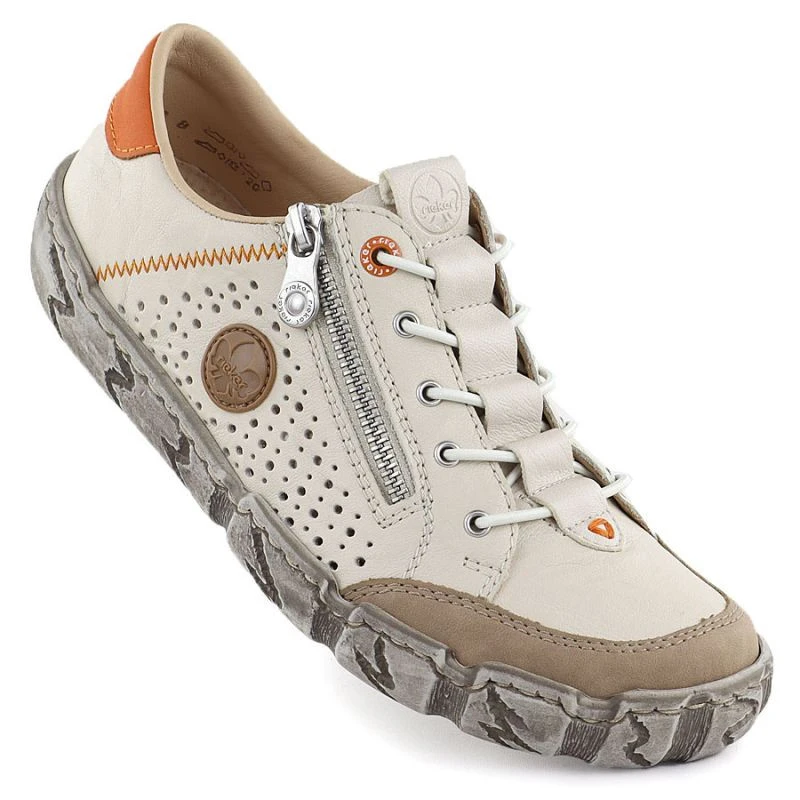 Béžová kožená prolamovaná dámská polobotka Rieker L0355-61