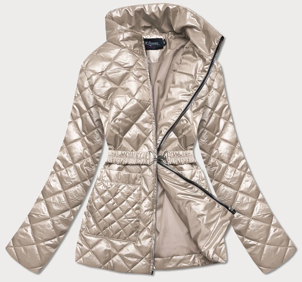 Béžová prošívaná dámská bunda s páskem (BH2208)