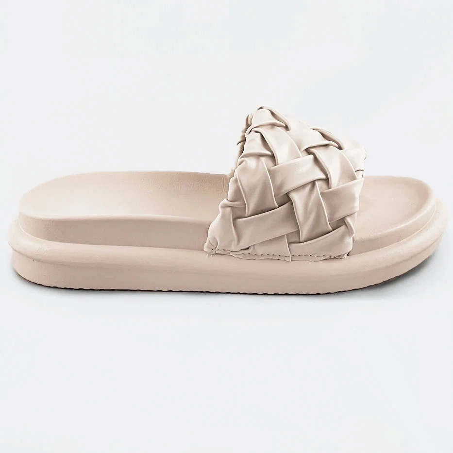 Béžové dámské pantofle se zapleteným páskem (XA-137)