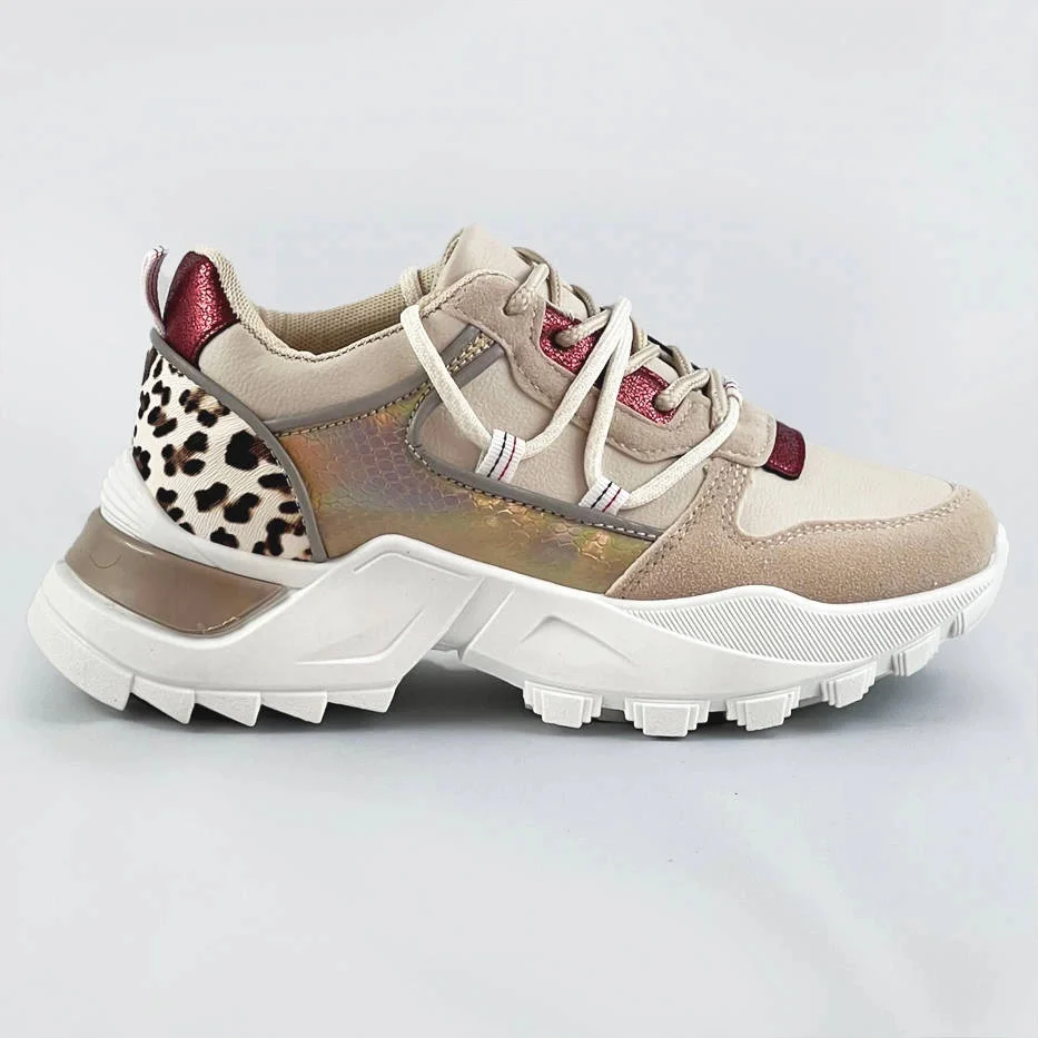 Béžové dámské sportovní boty se zvířecím motivem (VIVI1038)