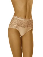 Krajkové kalhotky s vyšším pasem, které vám poskytnou pohodlí a krásný, velmi ženský vzhled. Měkké a pružné, v pase na jemné gumičce. Složení: 83 % polyamid, 17 % elastan.