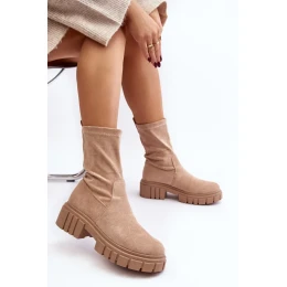 Dámské nazouvací kotníkové boty z eko semiše. Nasazené na masivním plochém podpatku a platformě. Nezateplené. Měkká stélka zajišťuje pohodlí při používání. Podpatek v této obuvi je vyztužený. Tento model lze sladit s mnoha podzimními styly! Při výběru velikosti se řiďte tabulkou velikostí.