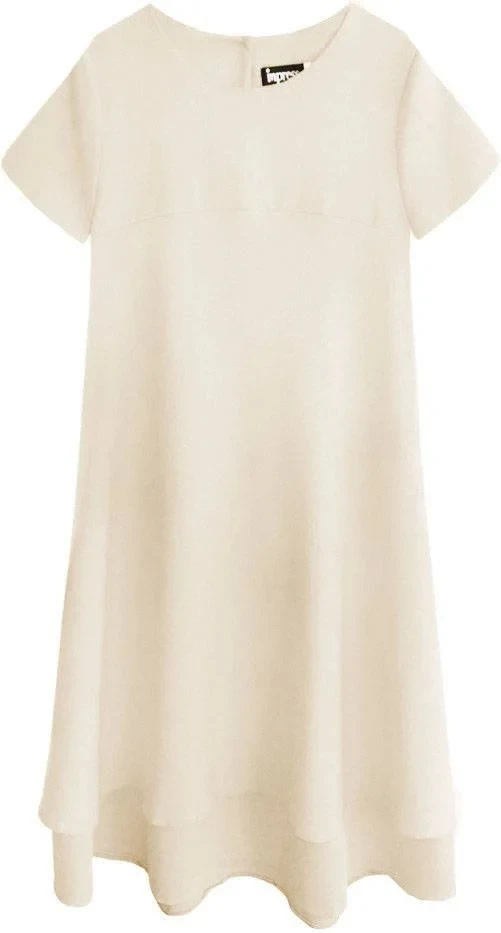 Model má volný střih, krátké rukávy a zapíná se vzadu knoflíčkem. Šaty jsou vyrobené z velmi kvalitního materiálu, mají podšívku olemovanou volánkem, skvěle padnou a na postavě vynikají. Model je polským výrobkem a je ideální pro vytváření originálních stylizací a outfitů.