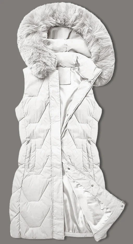 Bílá dámská vesta s kapucí olemovanou kožešinou J Style (16M9172-281)