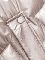 Vesta je lehce zateplená syntetickou péřovou výplní, má dvě kapsy bez zapínání a zapíná se zipem. Model má kapuci, kterou není možné odepnout. Vesta má délku k bokům.