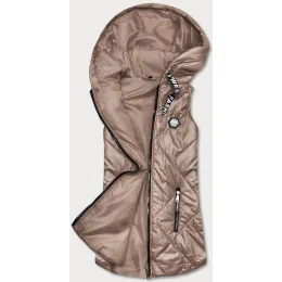 Tmavě béžová dámská vesta s kapucí (B0129-12)