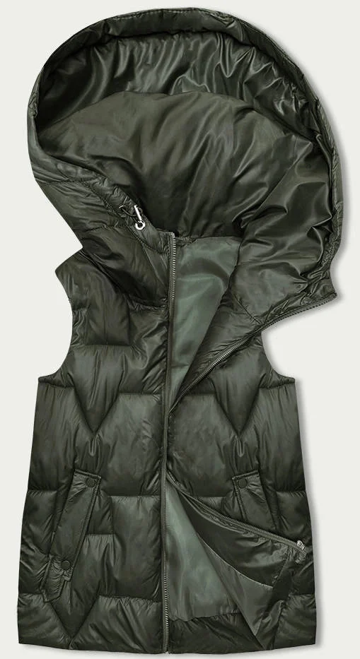 Dámská vesta v khaki barvě s kapucí (B8171-11)