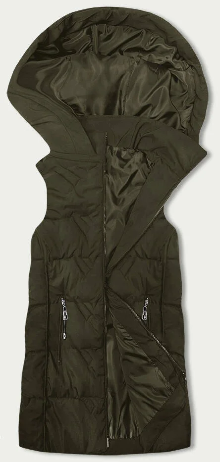 Dámská vesta v khaki barvě s kapucí (B8176-11)