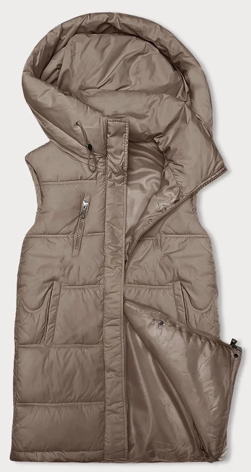 Tmavě béžová dámská vesta se stojáčkem a kapucí Miss Titi (3132)