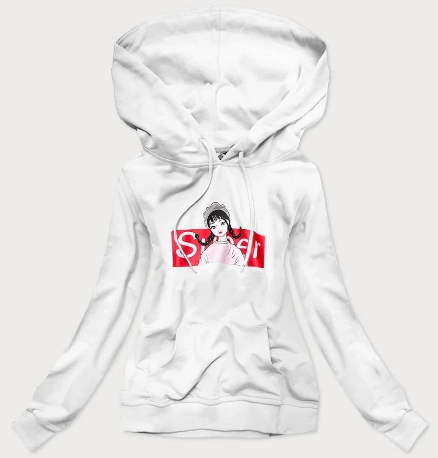 Bílá dámská sportovní mikina s kapucí (N4596)