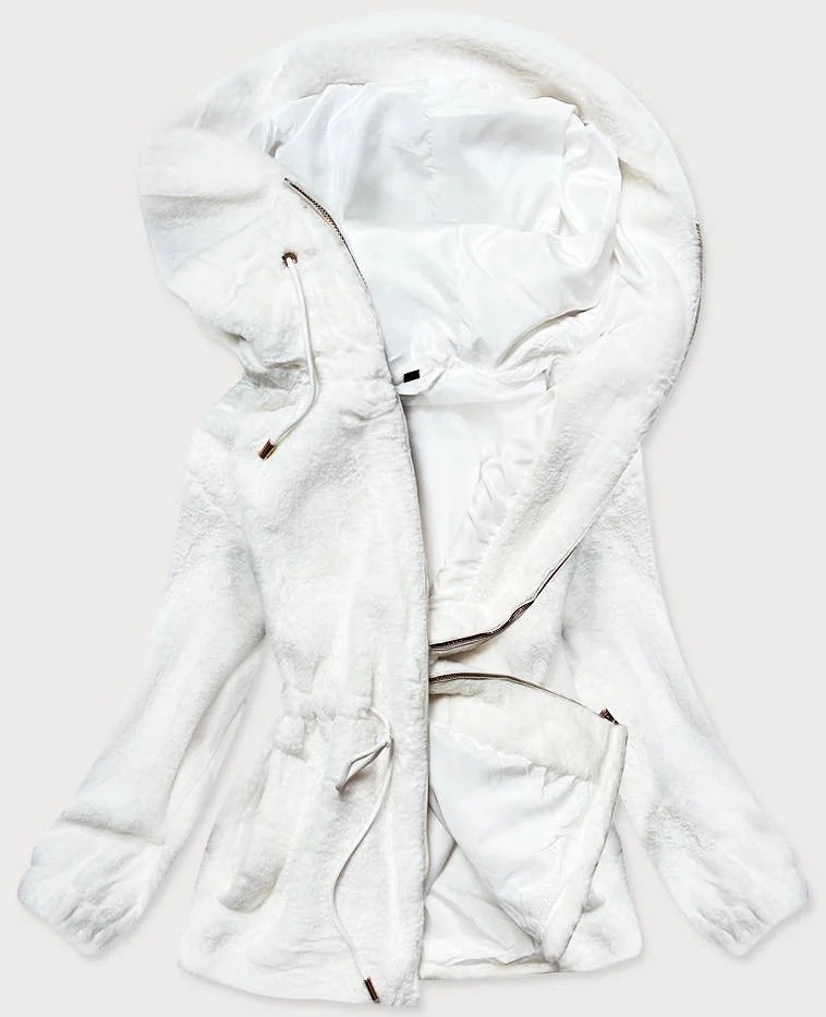 Bílá kožešinová dámská bunda s kapucí (BR9596-26)
