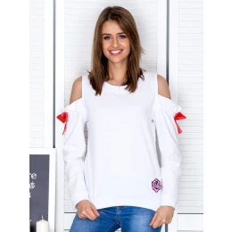 Mikina sprůstřihy na ramenou a mašlemi bílá.