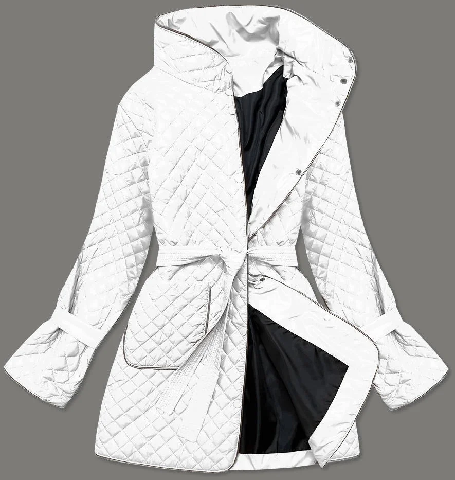 Bílá prošívaná dámská bunda s páskem (7262)