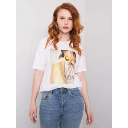 Bílé dámské tričko s potiskem a aplikací.