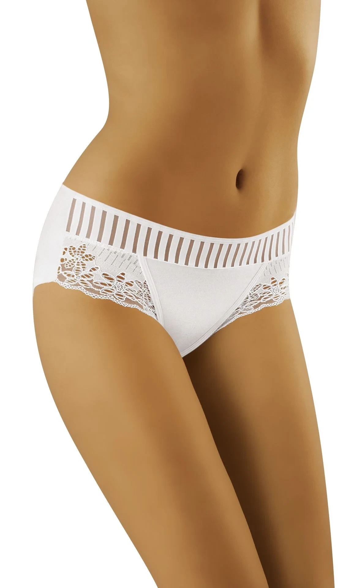 Jemné kalhotky, které se budou líbit dámám, které ocení naprosté pohodlí. Přední díl obohacený jemnou krajkou. Horní díl zakončený poloprůhledným žebrovaným tylem. Zadní díl je hladký. Mimořádně pohodlný a elegantní model. 90 % bavlna, 7 % elastan, 3 % polyamid.