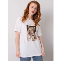 Bílé tričko se zvířecím potiskem.