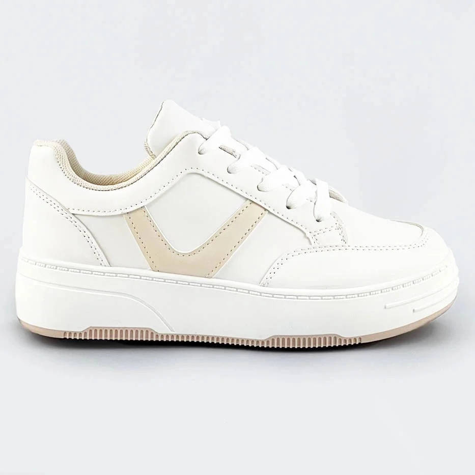 Bílo-béžové dámské sportovní šněrovací boty (S070)