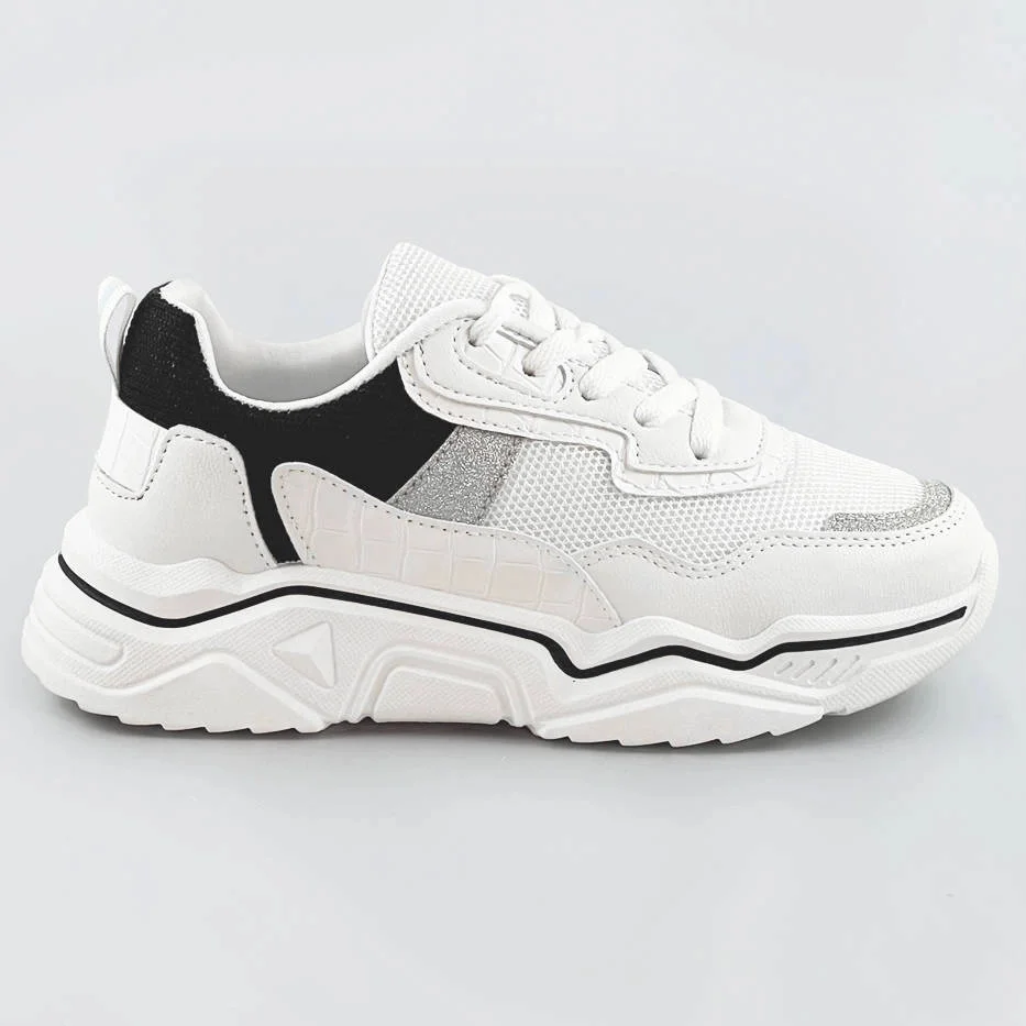 Bílo-černé dámské sneakersy s brokátovými vsadkami (LU-2)