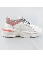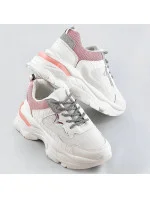 Bílo-růžové dámské šněrovací sportovní boty (LU-3)