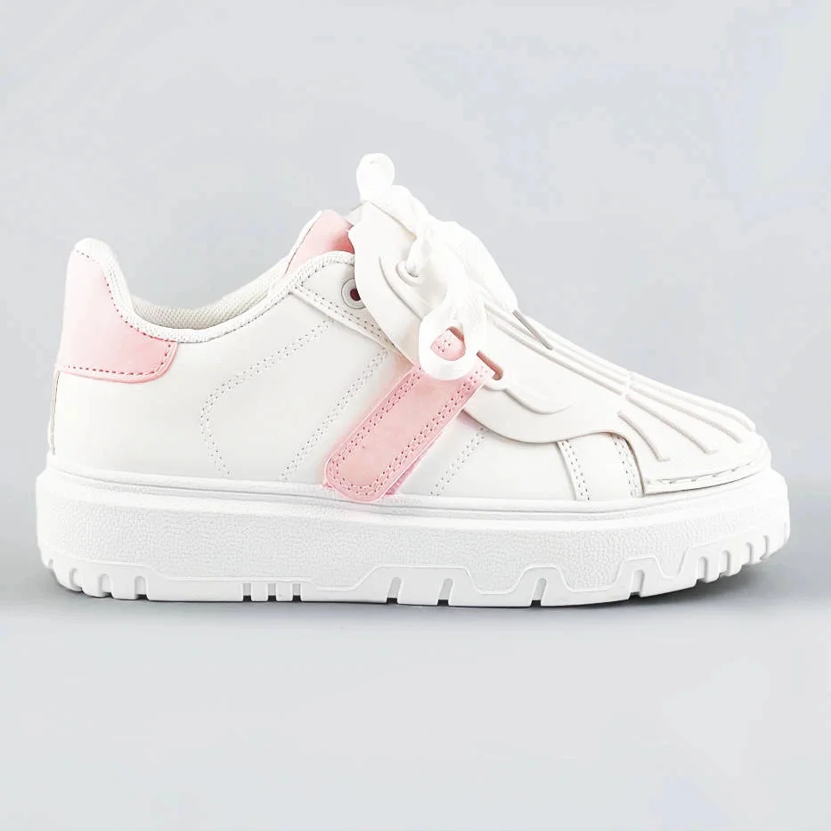 Bílo-růžové dámské sportovní boty se zakrytým šněrováním (RA2049)