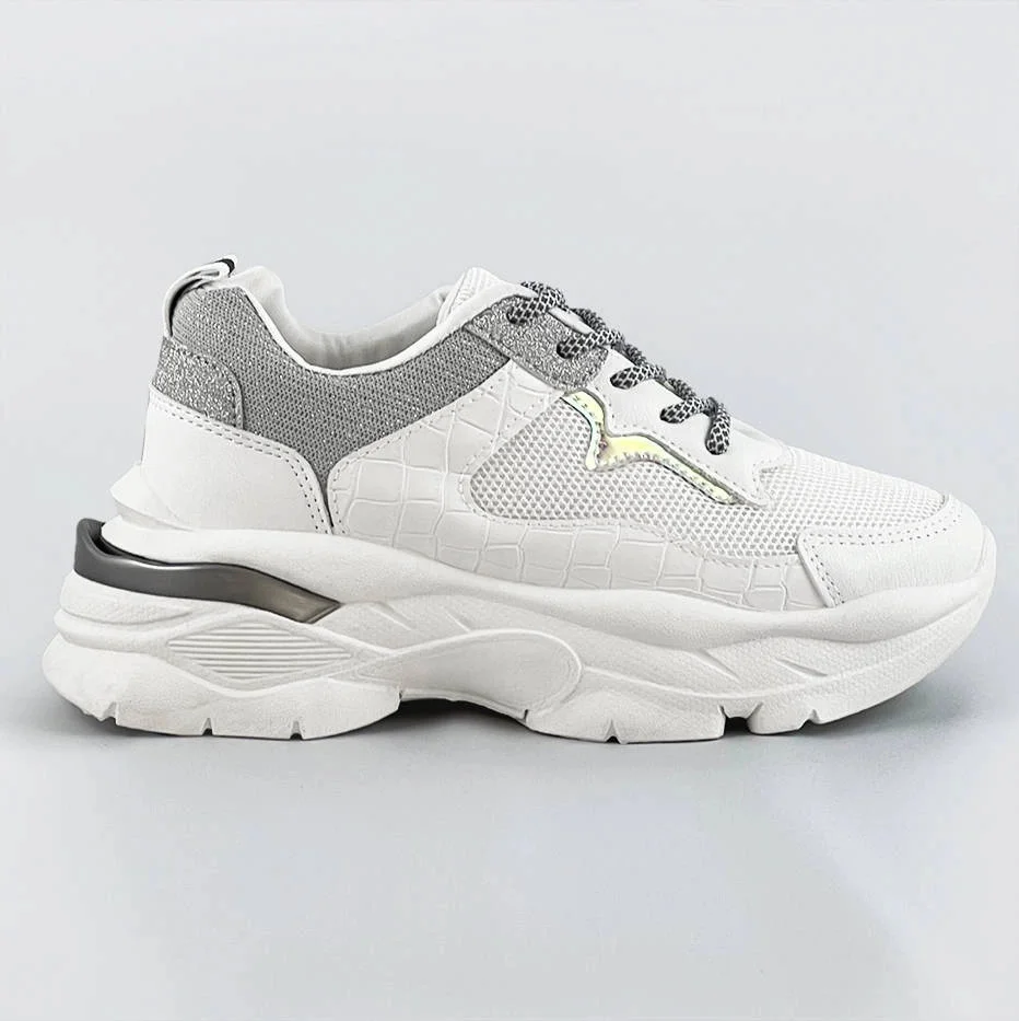 Bílo-šedé šněrovací dámské sportovní boty (LU-3)