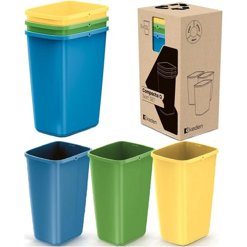 Barevný odpadkový koš COMPACTA Q SORT SET 3X12 L bude ideální pro třídění odpadu ve vaší domácnosti.