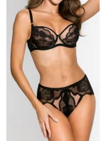 Měkká podprsenka z béžové síťoviny obalené jemnou černou krajkou je esencí elegance a rafinovanosti. Košíčky se přizpůsobí tvaru poprsí a zároveň poskytují dostatečnou oporu. Spodní část košíčku zdobí jemná krajka, která mu dodává jemnost a ženský půvab, a zároveň zdobí i horní část, čímž vytváří jedinečný stylový vzhled.