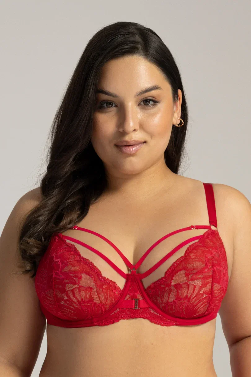 AV 1824/1 Venus je esencí ženského půvabu. Konstrukce poskytuje vynikající oporu poprsí, zatímco měkké košíčky s kosticemi zdůrazňují přirozené křivky. Šťavnatá krajka v barvě Barbados Cherry v kombinaci s béžovou markýzou vytváří svůdný dekolt, ideální pro zvláštní příležitosti.